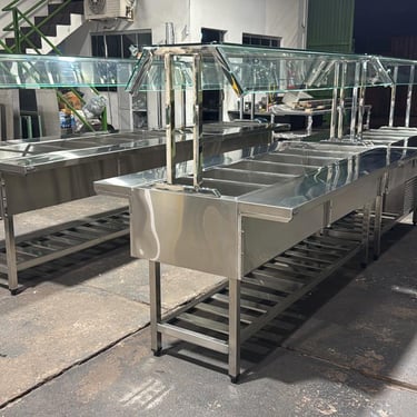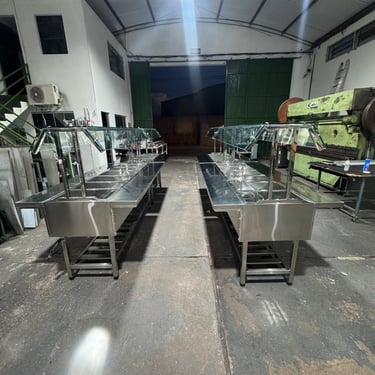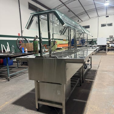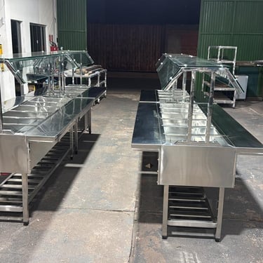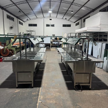 A Mult Inox entregou à Novo Sabor Refeições Coletivas um projeto customizado: a construção e instalação de buffets em aço inox, incluindo módulos quente e frio. Essa solução eleva o padrão de serviço, garantindo a higiene, durabilidade e eficiência térmica necessárias para servir refeições coletivas com a máxima qualidade.